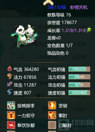 佩饰装备:优先速度、抗仙法、抗物理等,强化技能选择强化视死如归、遗产等。