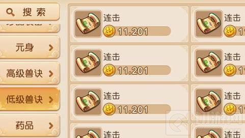 3.然后就是兽诀。兽诀特点:利润高,技术含量高。等到前期合宠打书的高峰期,低级兽诀的摆摊价会有一个爆发,因为商城中的吉祥锦囊是有限购的,兽诀产出跟不上需求,合宠打书的玩家就会通过摆摊“扫货”。这时候部分低兽诀能卖出超高的价格,比如必杀和连击能卖到10000金币!