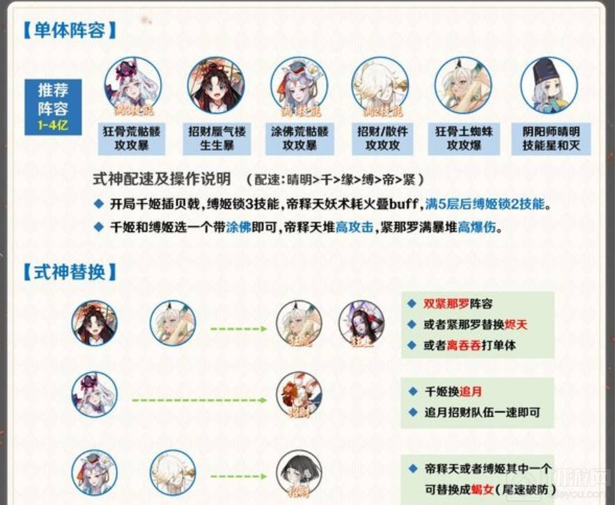 这两套阵容可以根据玩家手中所拥有的式神进行搭配战斗,里面详细介绍一些如何打怪的操作及配速搭配说明。