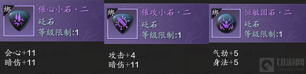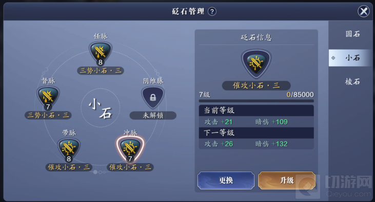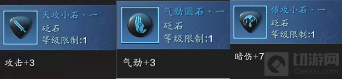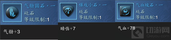 1、蓝色砭石:气劲圆石+催攻小石+气血棱石/天攻小石