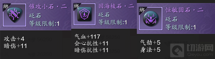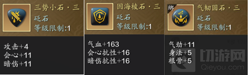 【气韧圆石·三】和【固海棱石·三】是必须要有的,因为真武主堆气劲和暗伤,股海提供的抗性可以帮助我们在pvp时减少受到地方的暴击伤害。