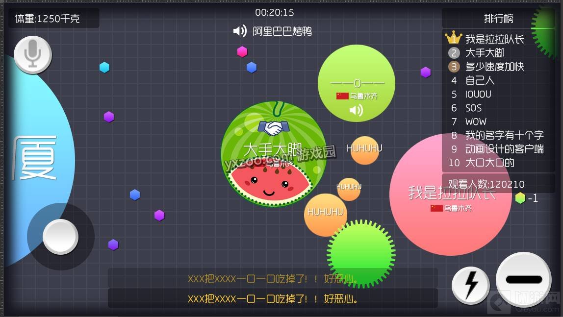 6. 攻略四:围攻,当你体积足够大时,跑得也慢,很难吃到小球,这时可以和别人联合围攻一个球,注意自己不要被比你更大的球吃掉哦。