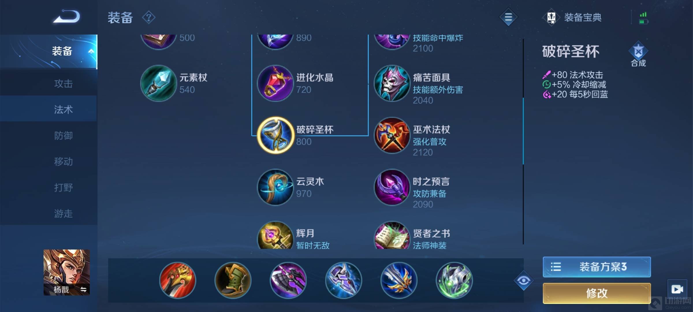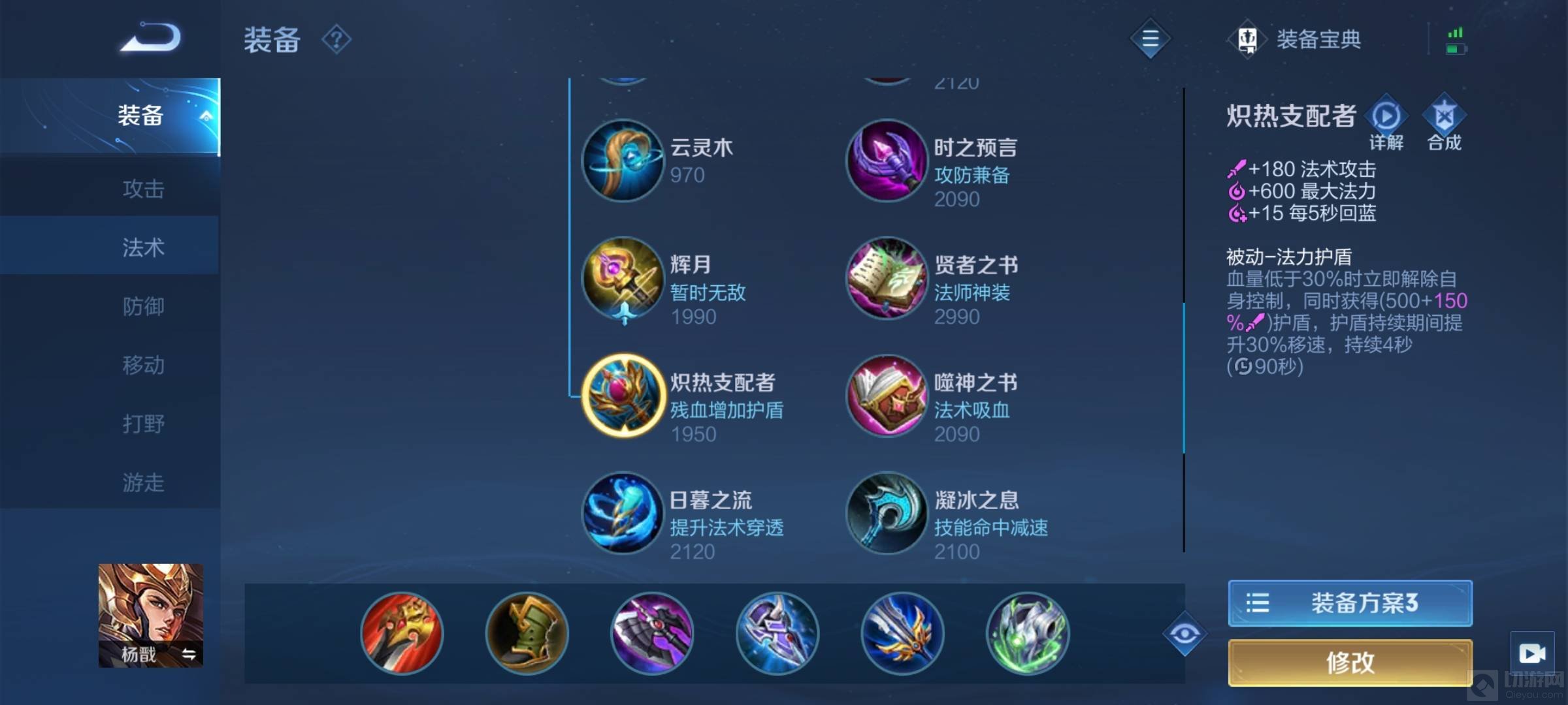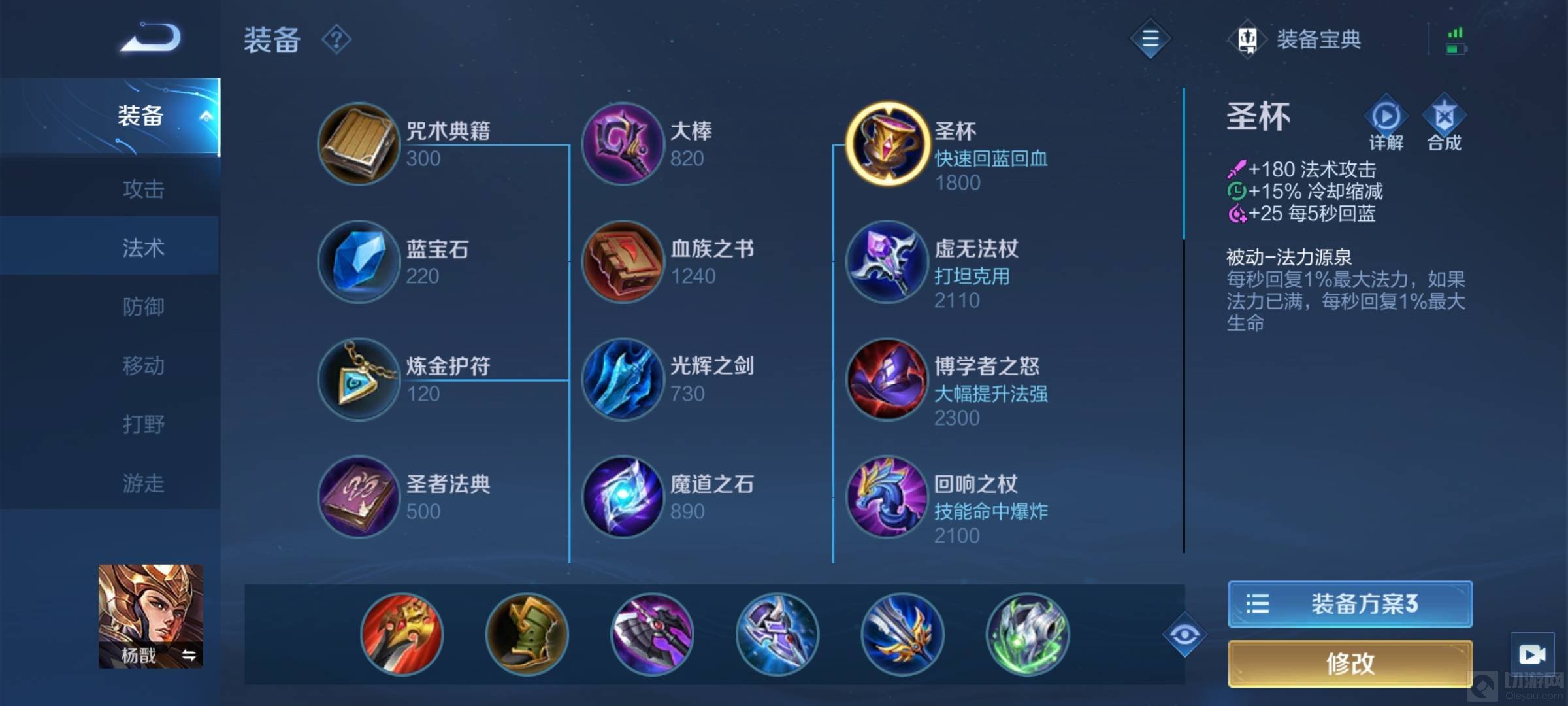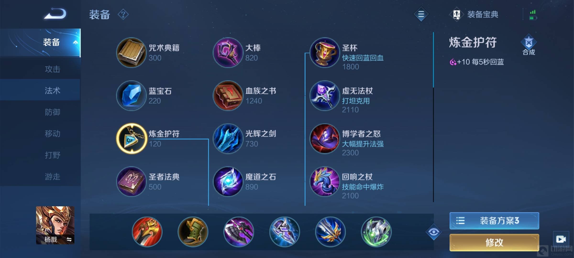 法师回蓝的装备有炼金护符,破碎圣杯,炽热支配者和圣杯。