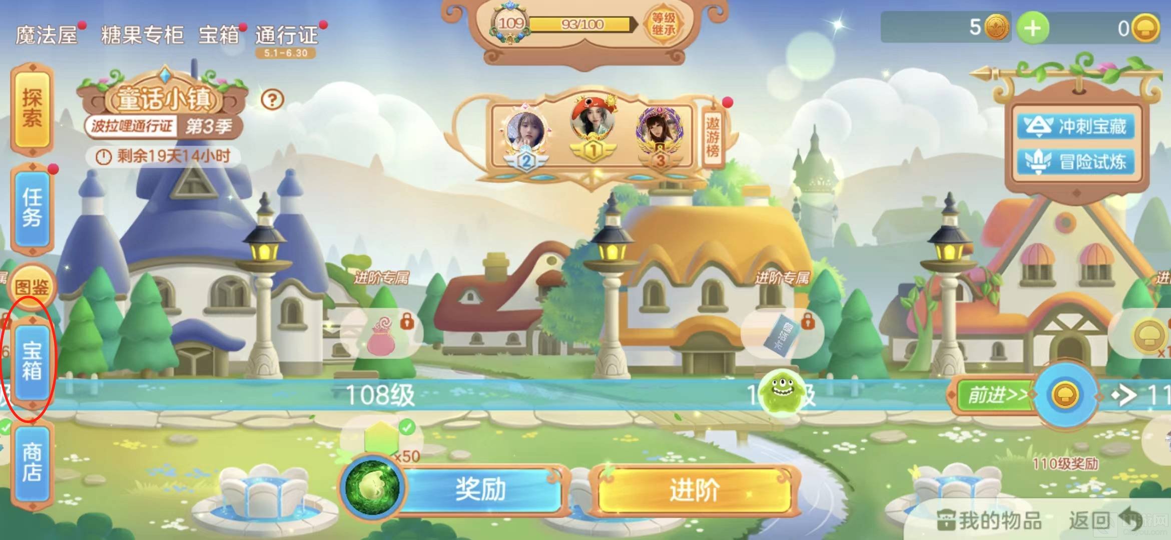 球球大作战童话珍珠宝箱的位置是在魔法屋通行证宝箱里面,开启宝箱即可提升通行证四级。