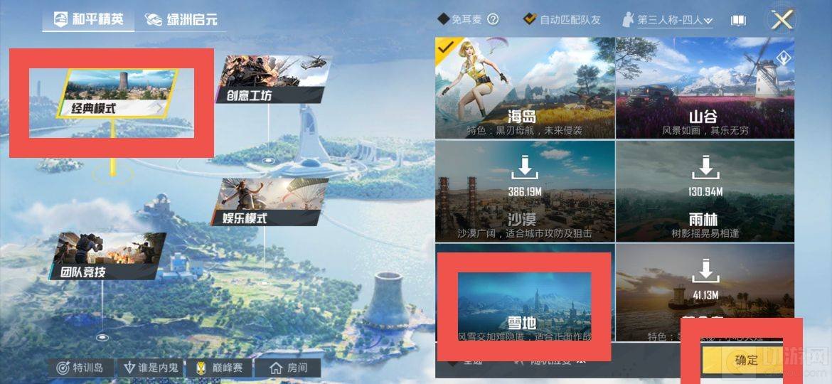 1.首先打开和平精英手游,进入到游戏大厅,选经典模式中的雪地地图。