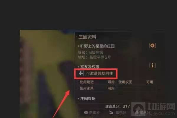 3.然后展开的是我们自己庄园的信息,在室友及权限一栏点击【 】。