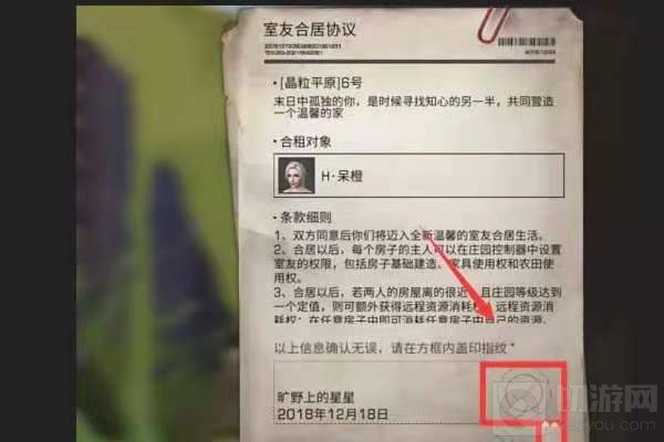 5.这时系统会给出一份室友合居协议,在右下角的位置点击一下。