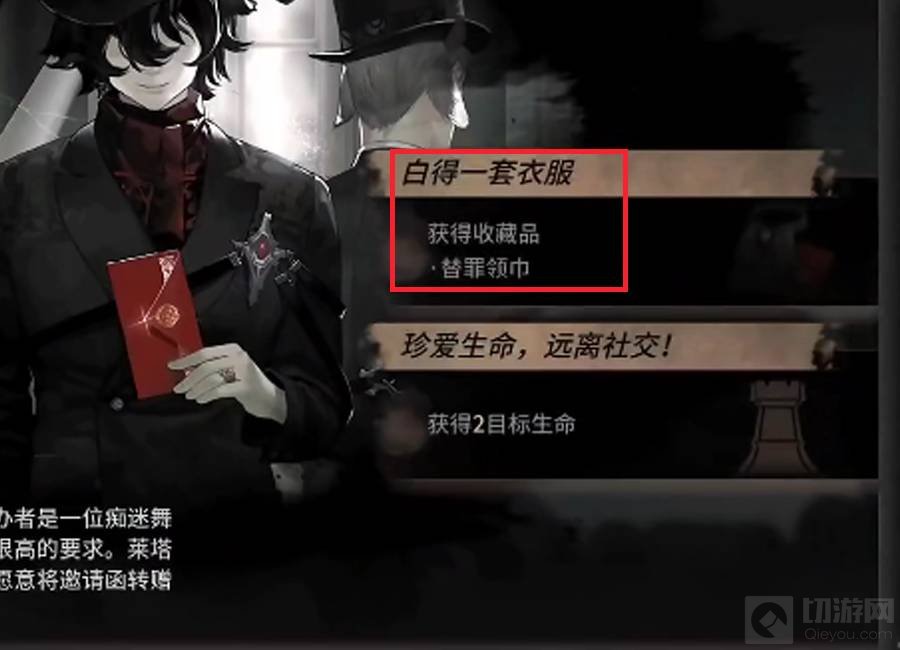 2.点击白色的一套衣服,可以获得一个收藏品:替罪领巾。