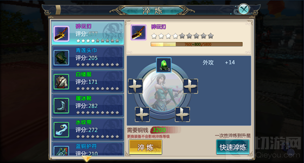 游戏中通过淬炼界面脸提升装备额外的能力,淬炼等级越高属性越多,当武器淬炼到相应的星级时会获得不同的光效哟~每9星为一个淬炼阶段。淬炼时即可使用装备作为淬炼材料。品质越高淬炼的经验值越高。