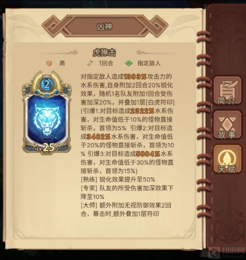 刺客第一回合虎击后2层符印(大师技能暴击符印+1),第二回合幻影斩击符印+1,可以达到3层符印,然后天女散花最大化输出(刺客在9阶的时候可以解锁第二回合行动2次的效果),若刺客在副本内拿到不占词条,可增加更多输出。