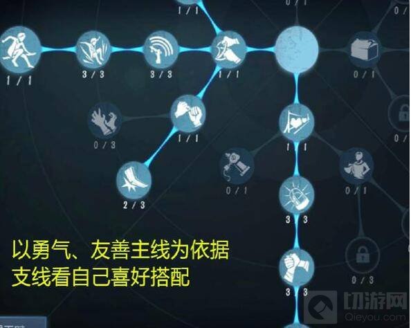 4、这里直接推荐天赋加点说下这个天赋的好处:友善部分增益BUFF以自己为中心为队友提供破译、治疗、移速等的加成效果;勇气则让自己更为灵活,被动的触发可以让屠夫追不到、砍不中。