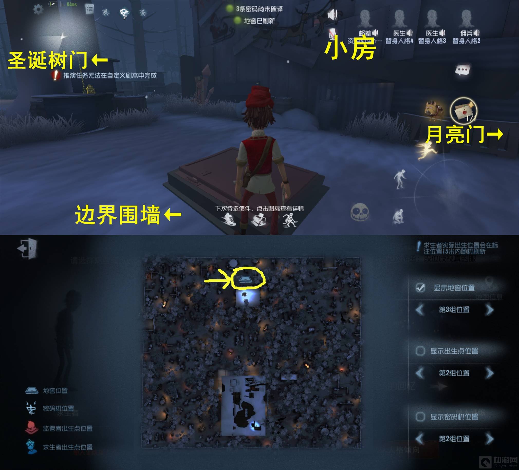 记忆点:①在小房靠近边界围墙一侧的空地,位于圣诞树门与月亮门中间