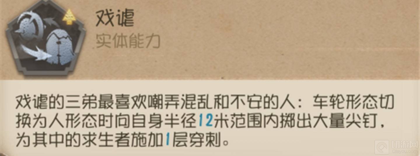 ② 在开启二阶技能后,可以先用轮形态碾中求生者,之后立即切换人形态。【戏谑】会为附近求生者施加1层穿刺,这样能快速累加2层穿刺,再使用普攻将其击倒。