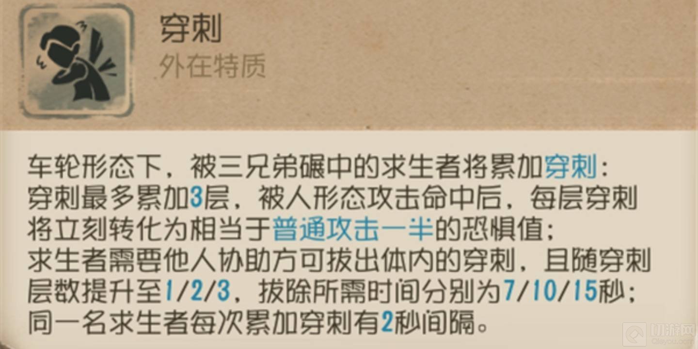 ③【穿刺之轮】可以隔着薄墙命中求生者,打断其交互并累加1层穿刺。