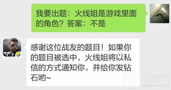火线每日一题,我们战友自己出题!就是你展示才华的舞台把和手游有关的题目及答案,统统发给火线姐,你的题目和答案被选中后,将会领取一大笔丰厚的钻石礼包哦!