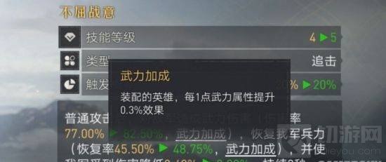 2、每个技能都有其对应的加成属性,例如武力加成的技能,我们就应该优先装配给主属性为武力的英雄,其他属性的技能也是同理。