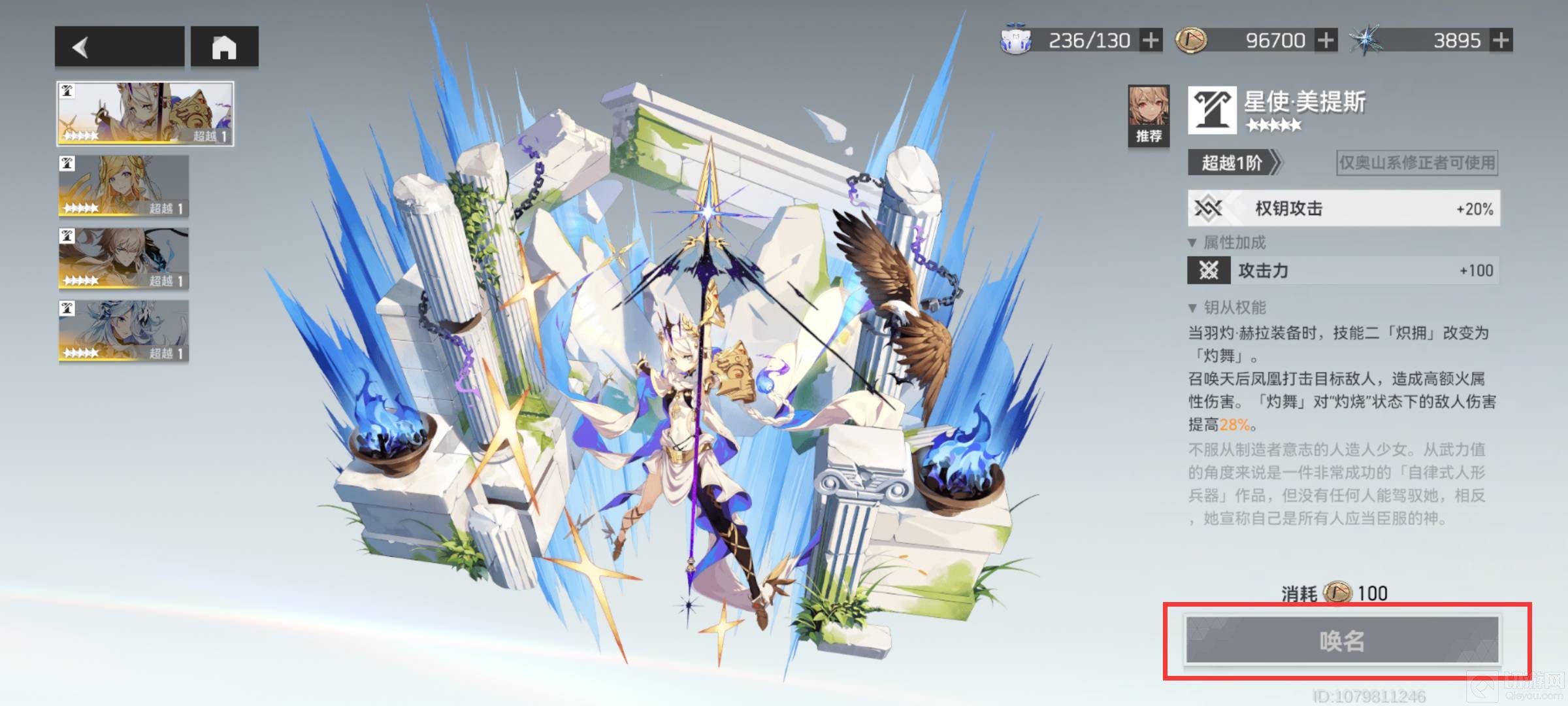 深空之眼中专属钥从通过唤名获得。