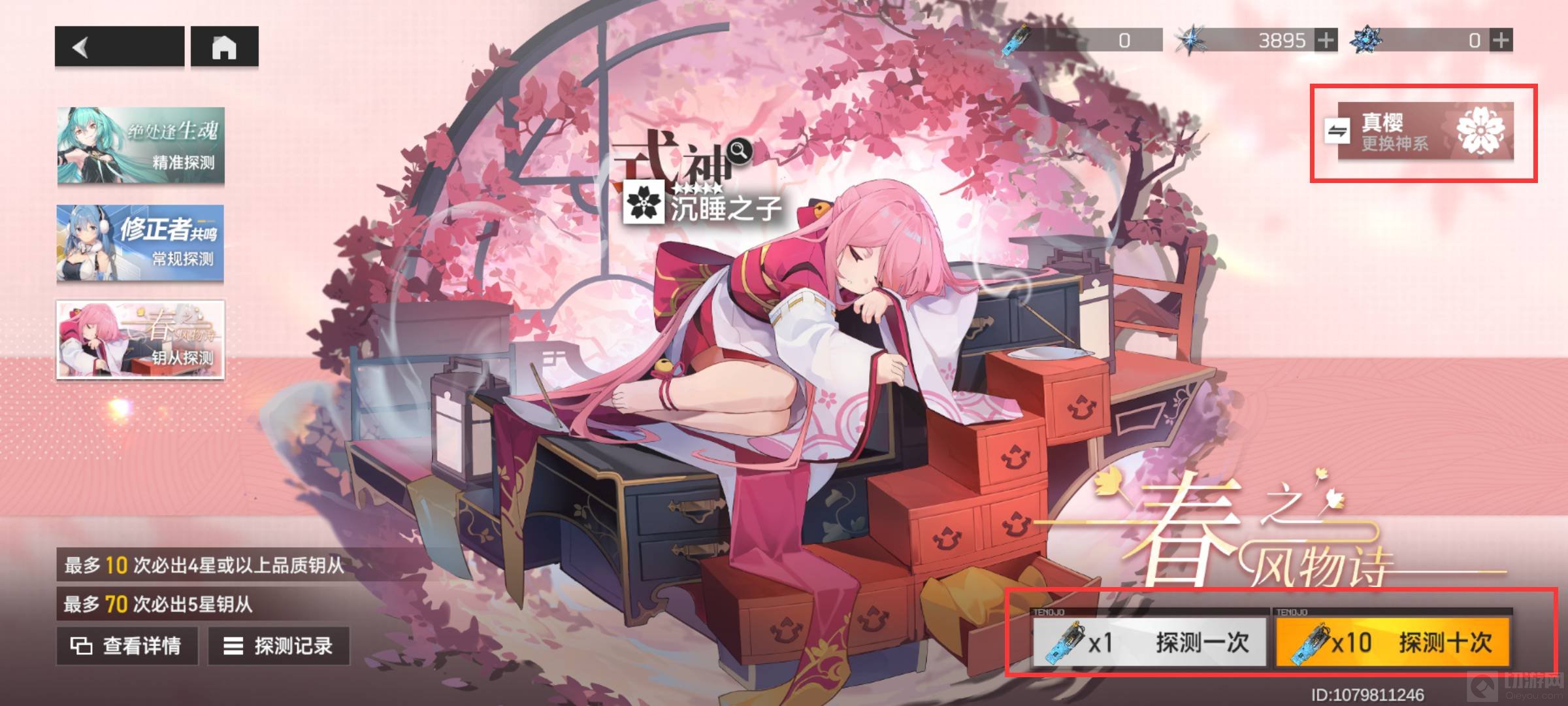3、选择想要唤名的钥从的神系,进行探测。