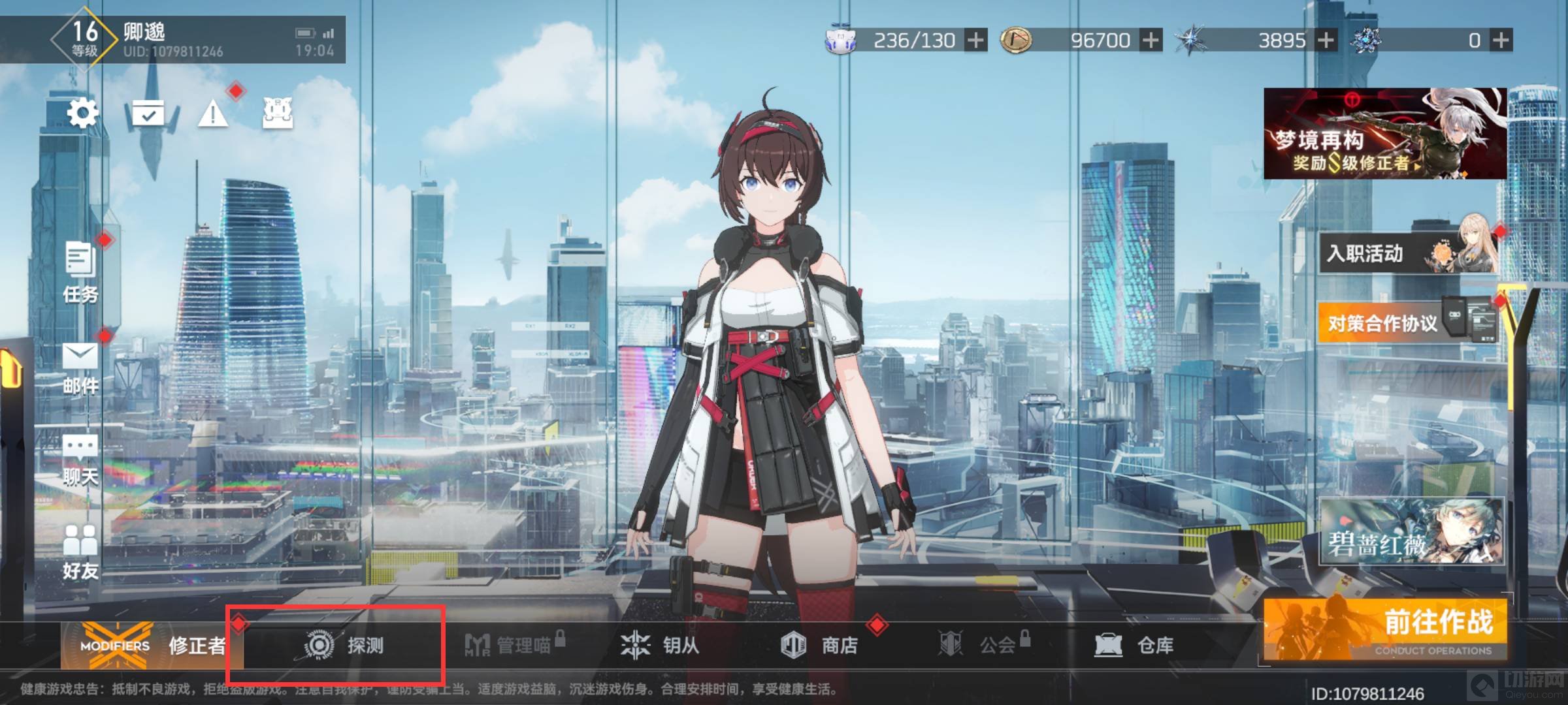 1、先进入游戏,点击左下角探测。