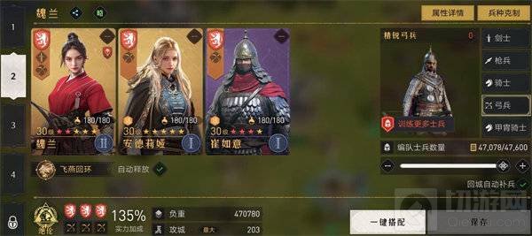 以魏兰为核心的弓手阵容,魏兰是一个免费赠送的新手英雄,安德莉娅第二天钱都赠送,崔如意是紫色英雄抽取就能获得,在兵种选择上使用弓兵,安德莉娅给队伍提供回复状态,魏兰为主力输出,不管是伤害还是拆家都不错。