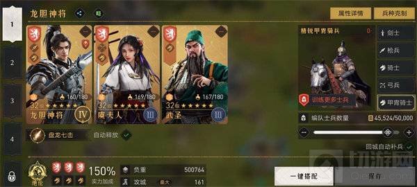 以赵云为核心的连击阵容,有很高的爆发力,以超高的伤害终结战斗,在前期无论是PVP还是PVE都是非常好用的,可以帮助玩家快速发育。该阵容包含了龙胆神将(解锁手册获得)、虞夫人(免费送)、武圣(首充获得),获取方式都比较简单,对于平民小氪玩家来说是一个不错的选择。在兵种选择上使用骑士,这三个英雄都是具有骑士羁绊的,其中龙胆神将主力输出,虞夫人在三号位给他们两个加状态。