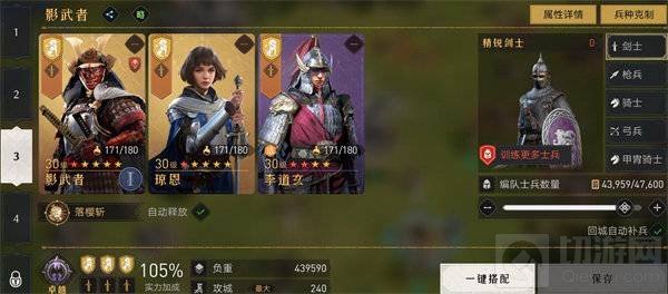 影武者、琼恩、李道玄,影武者的拆家能力一流,主力加点催城点数,在攻城能力上首屈一指,玩PVE攻城的时候可以轻松拿下拆家首功,获得更多奖励。