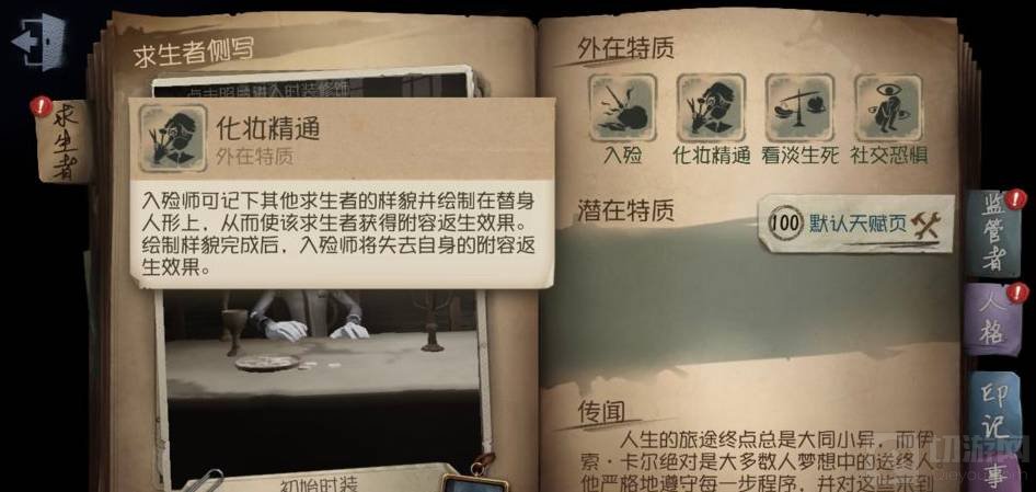 6、入殓师的缺陷在于开局需要找到队友,后续才能进行协助。而且更改入殓对象必须去灵柩处,这样一来,灵活性会特别差。入殓师对自己的复活效果只能有一次,也就说第一次上椅子,然后会复活,之后再上椅子,就会直接淘汰。此外,队友被放上椅子,就不能进行更改入殓者了。