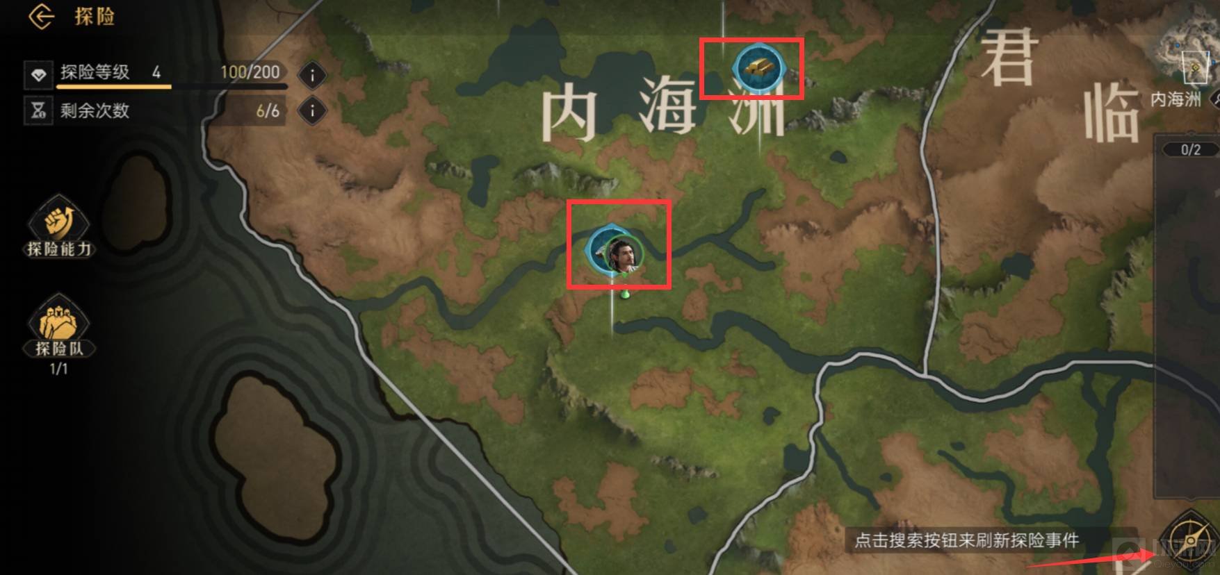 4,再点击右下角的指南针可以刷新新的探险事件,点击中间的图标就可以进行探险。