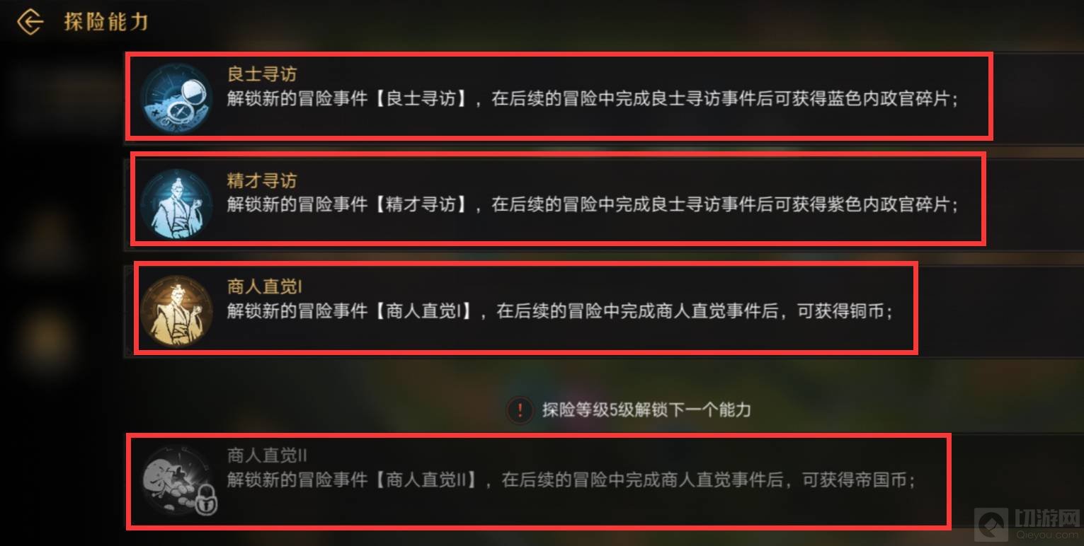 5,根据探险能力完成对应事件可以获得大量奖励。