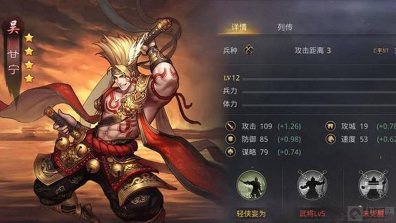 3;甘宁兵种转长枪兵,结合【形兵之极】的减伤效果。甘宁做前锋,在孙权和大量控制技能的保护下,最怕的并不是一系列低频、低速、高伤的策略攻击组合,而是高频、高速、高伤的菜刀队。所以甘宁兵种转长枪兵,结合【形兵之极】的减伤效果,可以减少其受的菜刀队骑兵普攻造成的追击伤害。