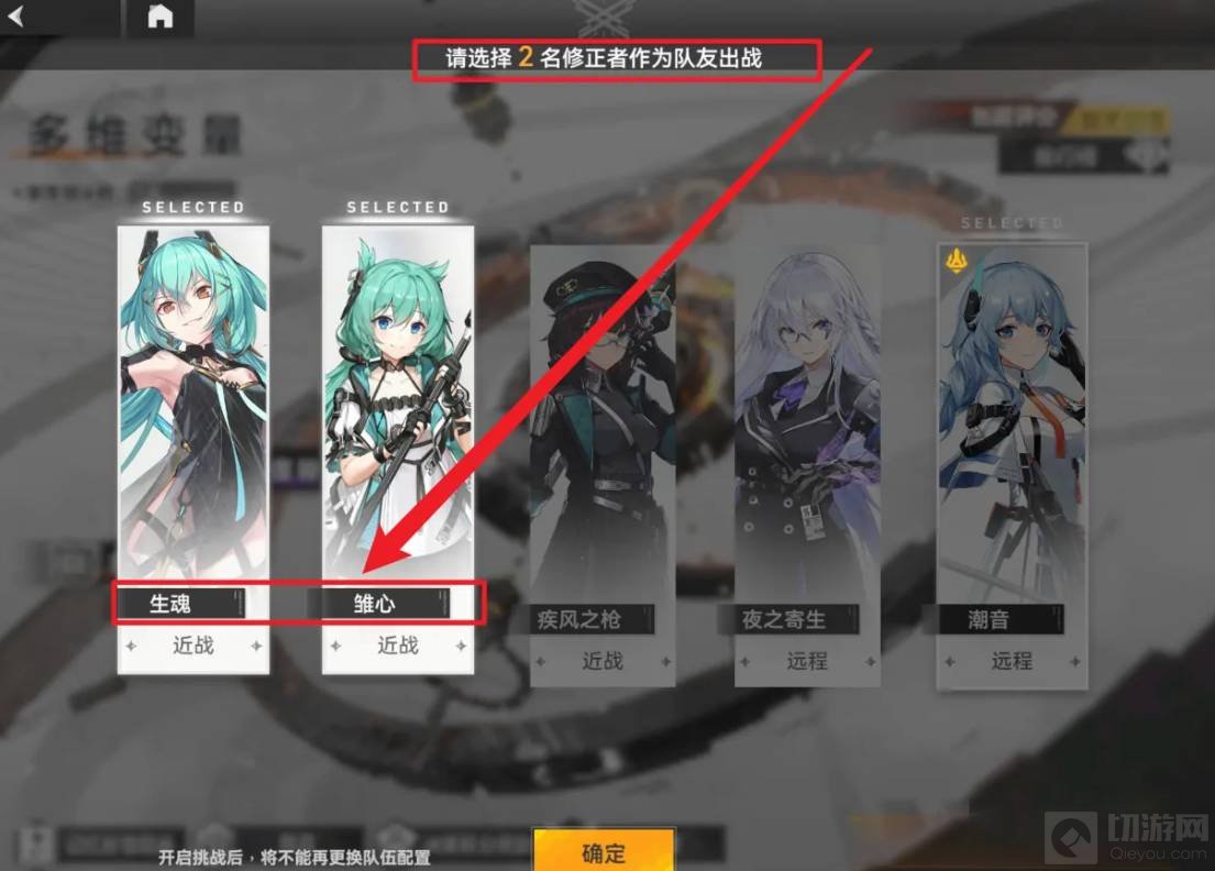 3、然后再选择两名作战队友,推荐选择生魂,雏心。