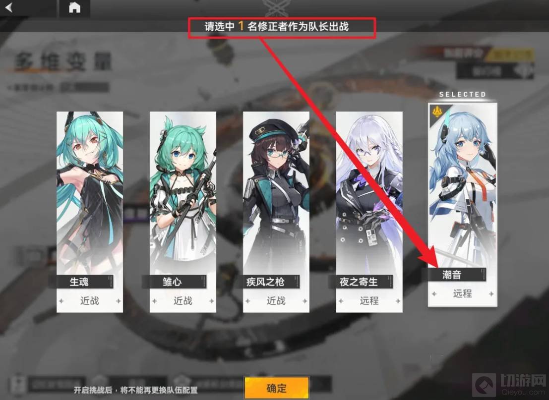 2、然后根据提示选择一名队长角色,推荐选用潮音。