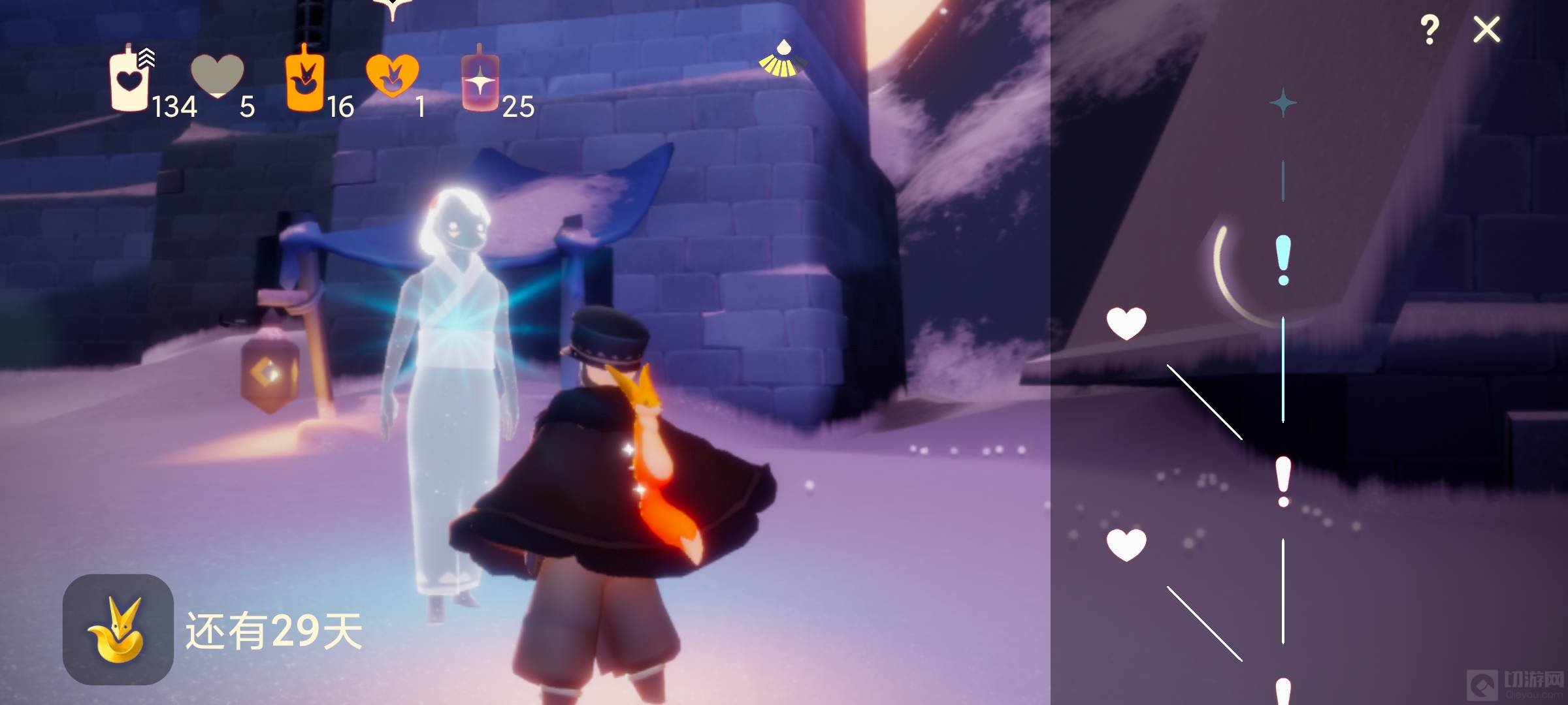 光遇爱心先祖也叫向导先祖,因为完成向导先祖任务可以获取爱心,爱心任务先祖以霞谷为例有四个。