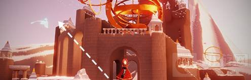 2.先往左边飞行,可以在这里看到一个长长的阶梯。
