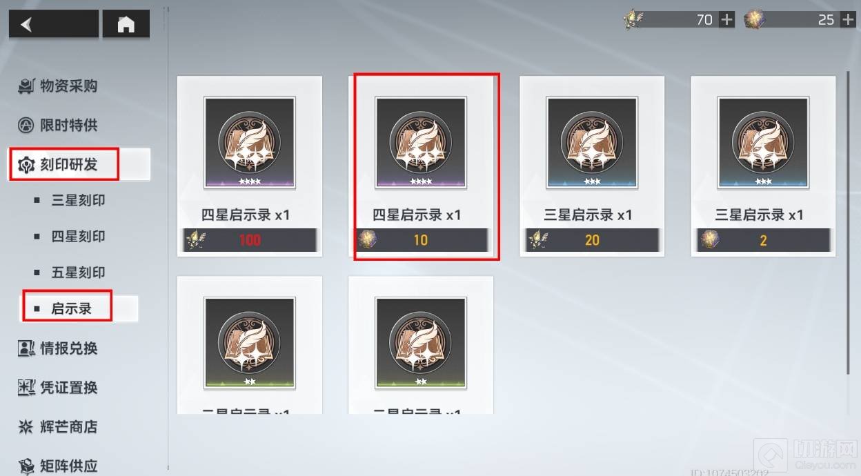 3、最后看到左边的刻印研发,然后找到启示录,点击兑换即可获得。