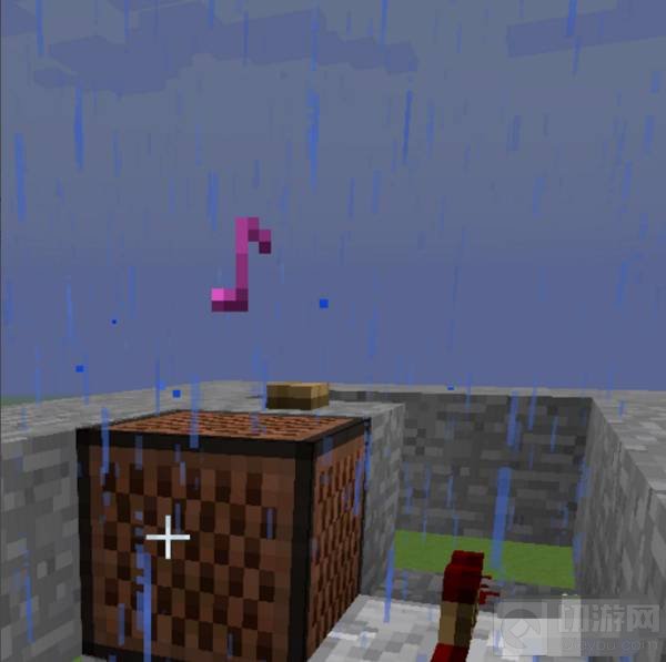 7、音符盒右侧中间的红石打掉,放红石中继器。音符盒后方放任意一个方块。