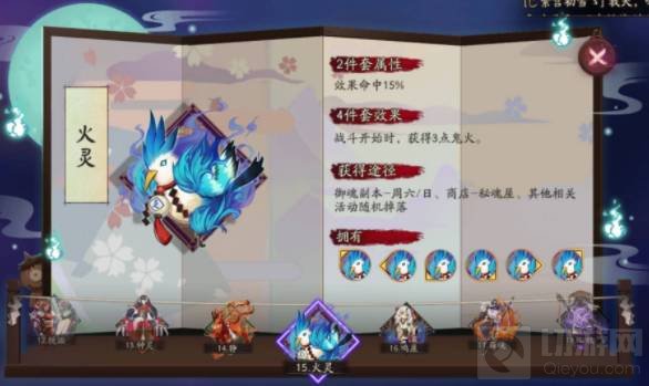 2.二速食灵或者鸦天狗,食灵携带火灵即可,御魂属性无脑速攻攻即可。鸦天狗的御魂以招财最好,和食灵一样也是速攻攻即可。当然你觉得自己运气好脸足够白的话也可以考虑一下轮入道,不过个人并不是很推荐。
