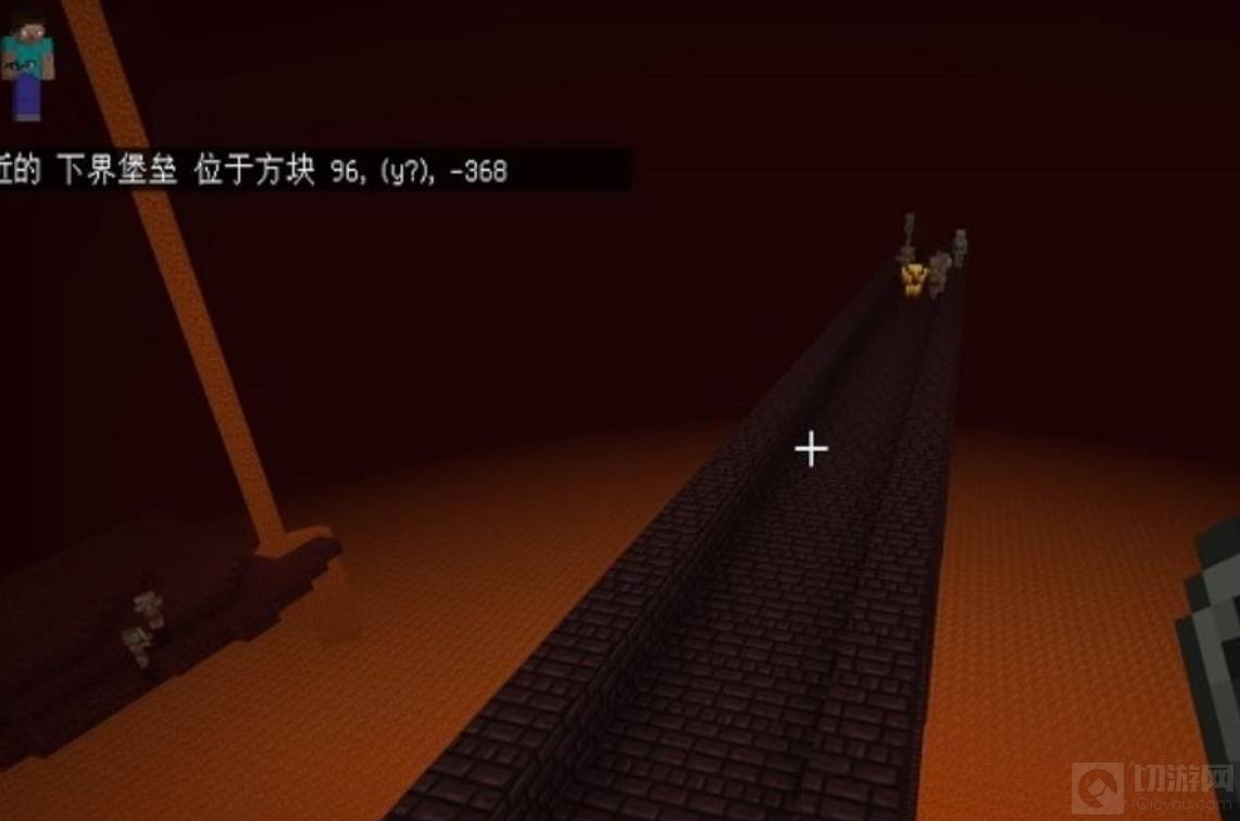 2.地狱堡垒在下界中是以Z轴方向分布的,大家首先可以沿着Z轴寻找地狱堡垒。