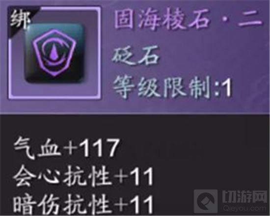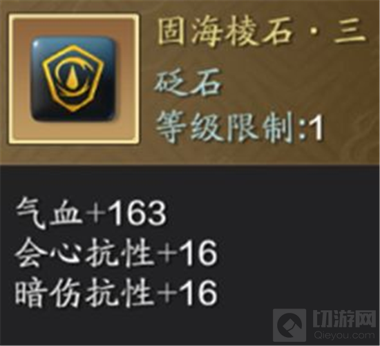 抗性;再补充【催攻小石·二】,增强攻击和暗伤;最后可以补充【固海棱石·二】,提高气血上限、会心和暗伤抗性。