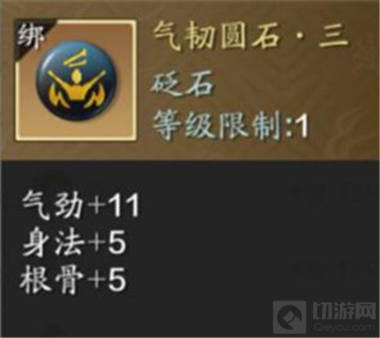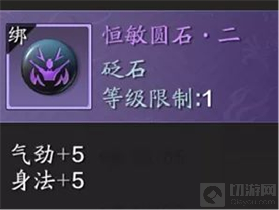 紫色砭石虽然是作为过渡使用,但选择依然更多,且增加的属性也很全面,真武依旧要注重输出和生存并重的思路,所以我们可以选择【恒敏圆石·二】,气劲契合主属性,身法提高气血上限和会心、暗伤,