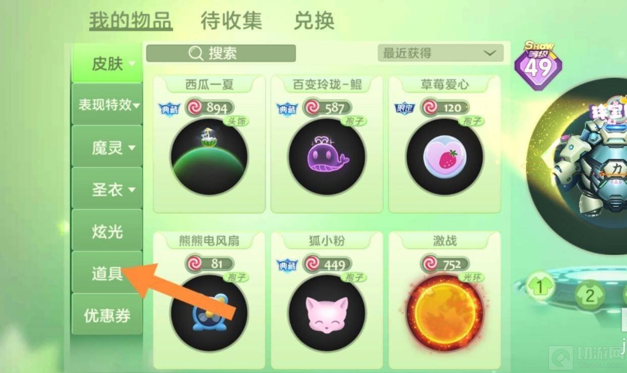 3、接着玩家需要继续点击道具按钮,将道具页面打开。