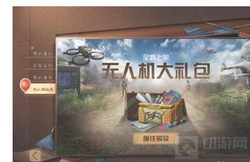 3.这样就会进入到无人机礼包页面了,接着再点击该页面中的前往购买功能,之后在新的页面中玩家就能购买到无人机礼包了,并且有一定的几率可以获得无人机芯片。