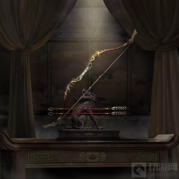 今稀世良弓,依古名称彤弓,配特制素矰。满月需拔山之力。千步之遥,插石可入,矢入则不复可出——彤素
