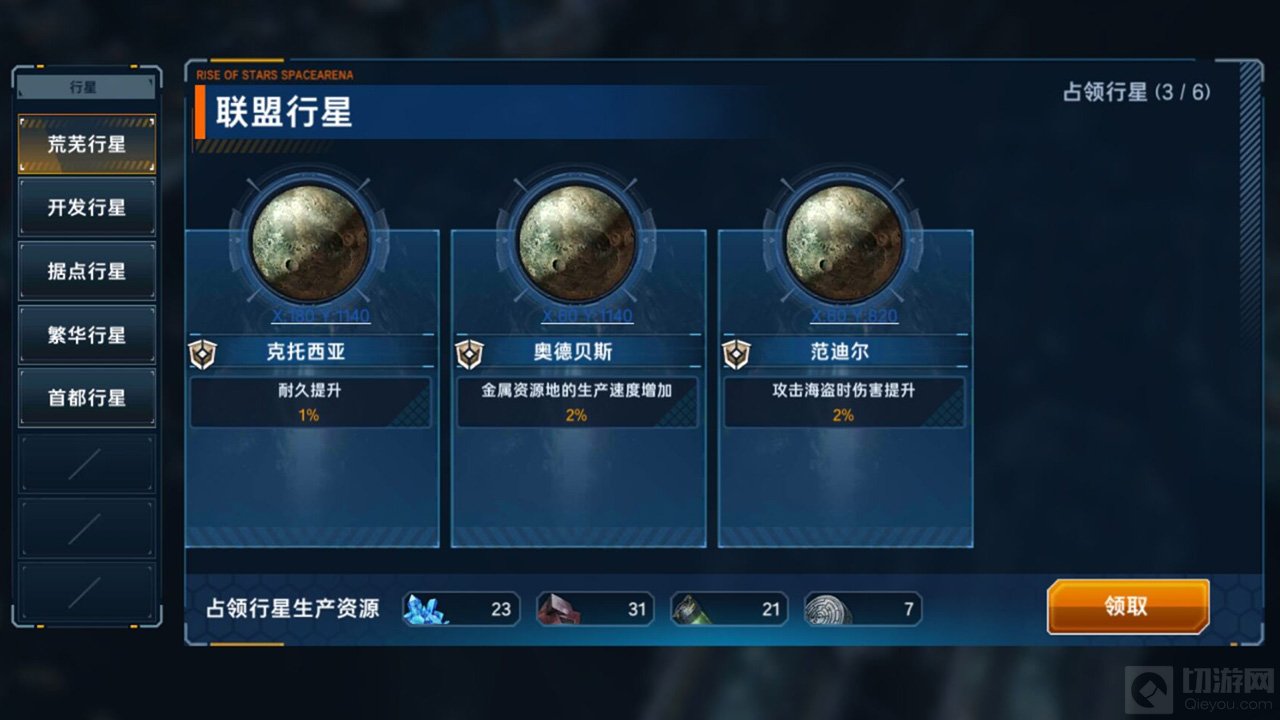 在游戏中,玩家所在的联盟可对任何行星发起进攻,以此来夺取行星的控制权,占领行星后,联盟成员皆可获得相应的奖励。