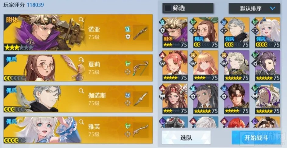 推荐阵容,诺亚、夏莉、伽诺斯、雅芙。
