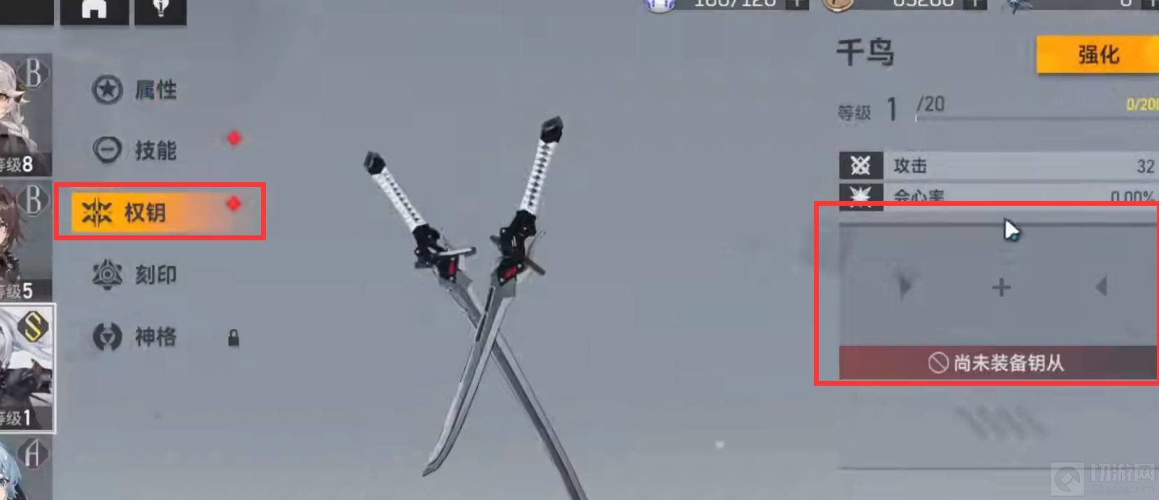 2、然后选择权钥,就可以在右边点击装备钥从。