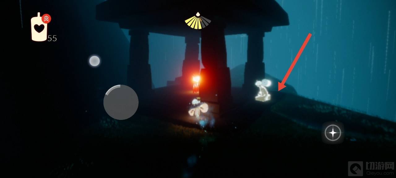 2.到亭子里面去,往左边看,可以看到另一个亭子中有一个亮点。