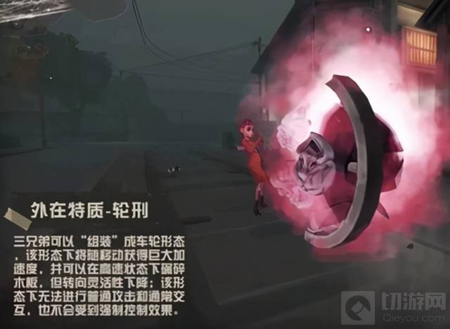 1.先分析一下破轮的技能,滚轮/人形切换,这个是破轮的核心玩法,轮状态下会越滚越快,使用平A可以刹车,速度够了可以漂移!而且轮形状态下免疫所有控制,有一定速度后可直接碾碎板,蹭到求生者札一根刺累积一层伤害。