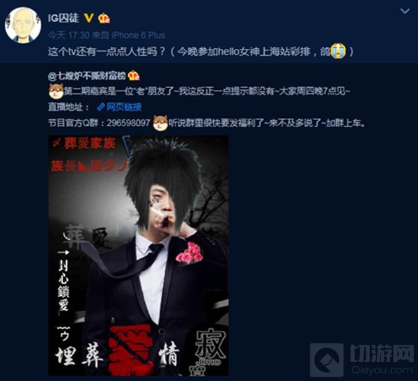 既IG当家女主播之后,IG人气男主播囚徒披“发”而来