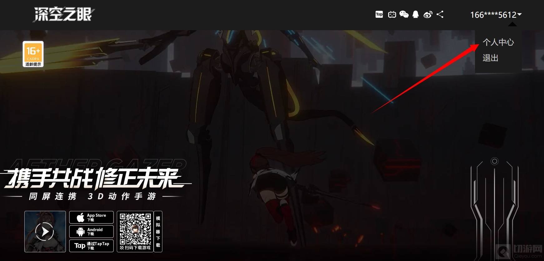 1、进入深空之眼的官方网站,然后点击右上角的登录选项,登录现有的账户。